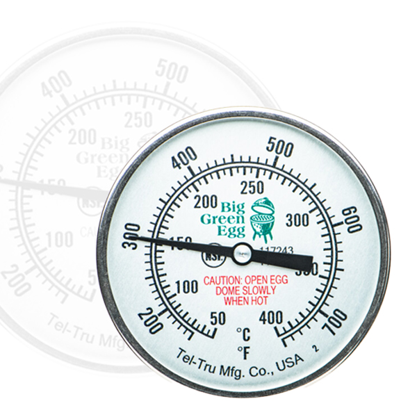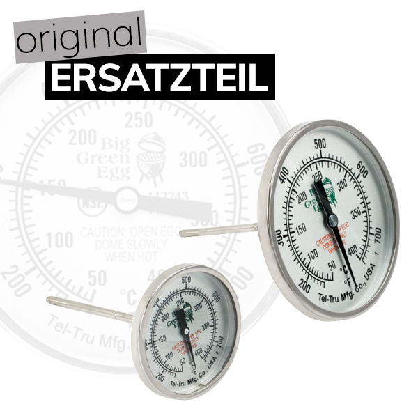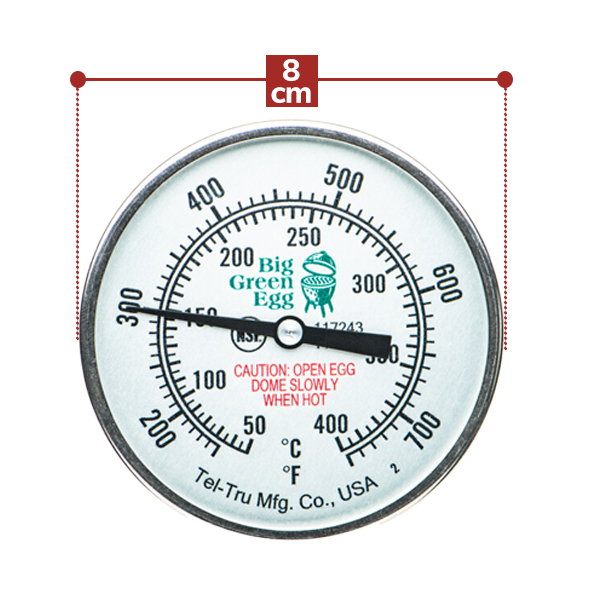 Jedes Big Green Egg wird standardmäßig mit einem Thermometer geliefert. Muss dieses nach jahrelangem Gebrauch einmal ausgetauscht werden? Bestellen Sie dann ein Tel-Tru Deckelthermometer (Tel-Tru Temperature Gauge). Wie der Name schon sagt, müssen Sie dieses Deckelthermometer im Deckel des EGGs platzieren. So wissen Sie immer, wie warm es im Innern des EGGs ist, ohne den Deckel zu öffnen, was einen Wärmeverlust zur Folge hätte. Das Tel-Tru Deckelthermometer ist in zwei Größen erhältlich und zeigt Temperaturen zwischen 50 °C und 400 °C an.