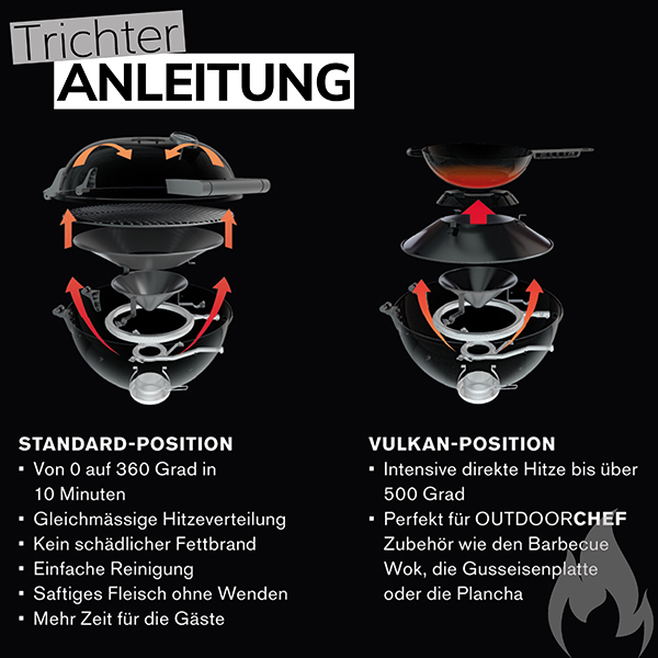 Wenn dein Grill an Leistung verliert, liegt es oft am Trichtersystem. Rost, Materialermüdung oder Hitzeverzug beeinträchtigen die Funktion – die Hitze verteilt sich ungleichmäßig, das Grillergebnis leidet.