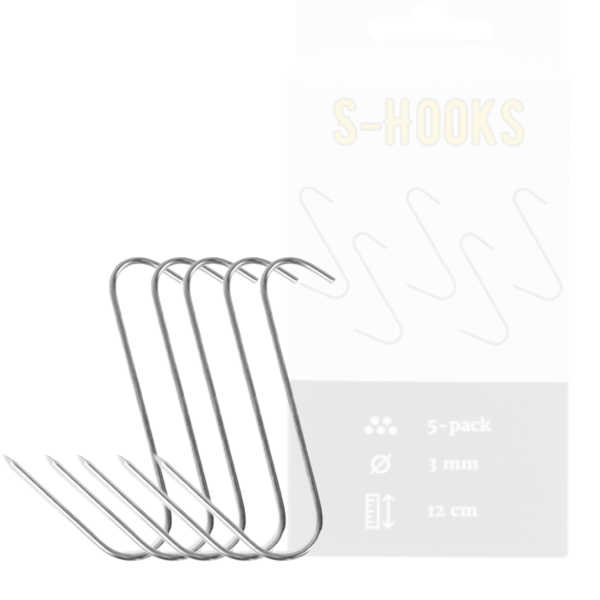Die S-förmigen Räucherhaken aus Edelstahl mit einem Drahtdurchmesser von 3 mm und einer Höhe von 12 cm eignen sich perfekt für das Räuchern von Fleisch und Schinken. Einfach den Haken in das Fleisch einführen und schon kannst du beginnen.