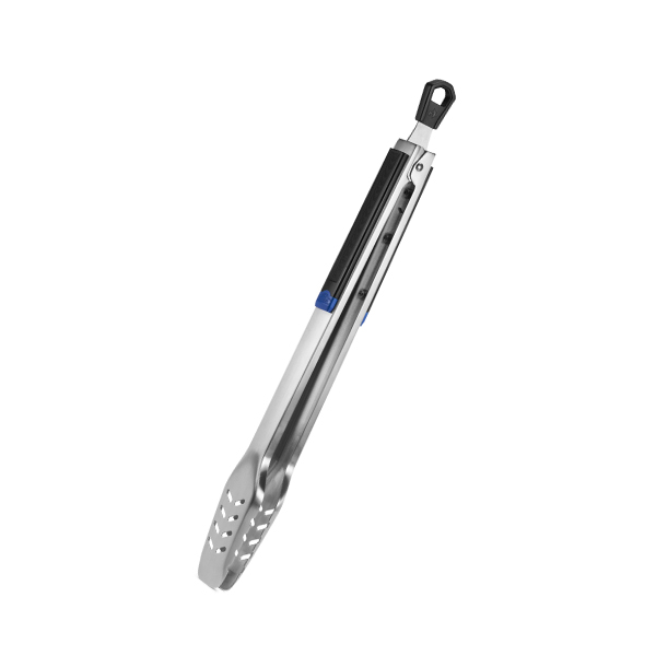 Dank der integrierten Zug-Verriegelung kann die Grillzange kompakt verschlossen und problemlos in Schubladen oder am Grillwagen aufbewahrt werden.