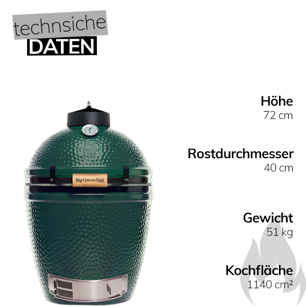Das Big Green Egg Medium zeichnet sich durch seine Vielseitigkeit aus, da es sowohl kompakt genug für kleinere Gärten, Terrassen und Balkone ist als auch optimalen Platz bietet, um 6 bis 8 Personen mit köstlichen Gerichten zu bekochen.