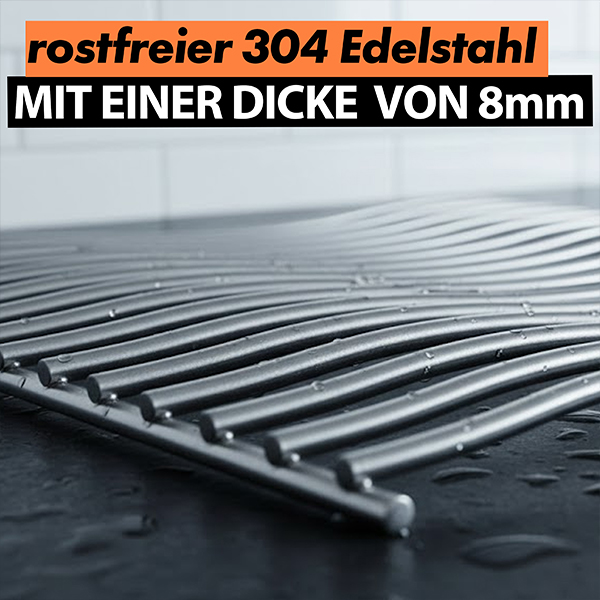 Optimale Hitzeverteilung: Im Gegensatz zu Gussrost hält Edelstahl die Hitze gleichmäßig und ist schnell auf Betriebstemperatur, was dir eine präzise Kontrolle über dein Grillgut ermöglicht.
