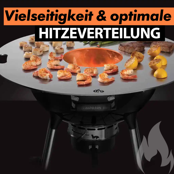 Die 78 cm Feuerplatte aus massivem Stahl verwandelt deinen Kugelgrill in eine vielseitige Plancha und macht ihn zur Bühne für unvergessliche BBQ-Momente im Garten.