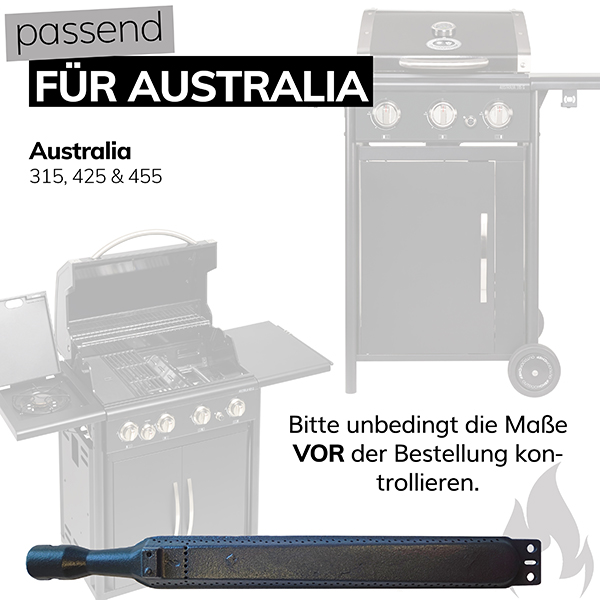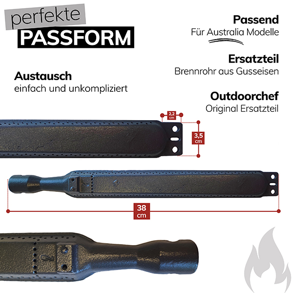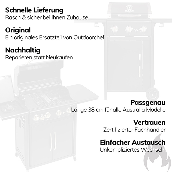 Der Ersatzbrenner aus Gusseisen ist mit mehreren Outdoorchef-Modellen kompatibel, darunter auch bestimmte Modelle der Australien Line. Achten Sie darauf, dass Ihr Modell in der Liste der kompatiblen Grills enthalten ist.