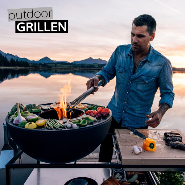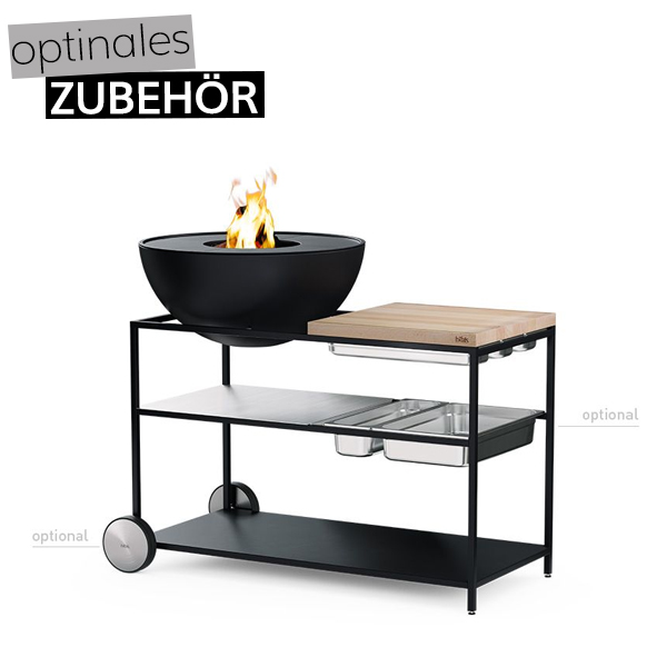 Mit dieser Outdoor-Küche wirst Du im wahrsten Sinne des Wortes zum Sternekoch. Unter freiem Himmel bietet Dir die FIRE KITCHEN den Freiraum, auf der BOWL zu grillen und alle Zutaten und Tools an einem Ort zu haben. Der Grill ist durch den Einsatz in der FIRE KITCHEN in perfekter Arbeitshöhe positioniert, die Arbeitsfläche mit Saftrille daneben schafft Platz für die Zubereitung der Speisen neben den Flammen. Die modularen Einlegeböden und Edelstahlbehälter bieten zusätzlichen Platz für Tools und Zutaten für Dein Menü über dem Feuer und dank der optionalen großen Räder bringst Du die FIRE KITCHEN an Deine Lieblingsspots.