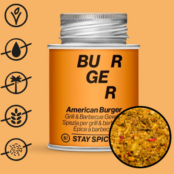 Dein Burger Patty wird in jeder Hinsicht perfekt gewürzt sein: Einfach nach deinem Geschmack STAY SPICED verwenden! Das American Burger Fleischgewürz wird einfach in das Hackfleisch gestreut und gleichmäßig eingearbeitet. Anschließend kannst du die Burger Pattys entweder auf dem Grill oder in der Pfanne zubereiten. Mit dem STAY SPICED Burgergewürz erhältst du den authentischen Geschmack eines amerikanischen Burgers, ganz gleich welche Hackfleischsorte du verwendest. Das American Burger Gewürz eignet sich nicht nur für Patties. Probiere es auch unbedingt für deinen Hackbraten, Frikadellen oder Beef Tatar aus – ein Genuss!