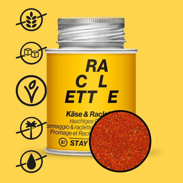 Käsefans aufgespasst: Hier kommt ein neuer S! Favorit für euch! Denn das STAY SPICED ! Raclettegewürz passt geschmacklich natürlich hervorragend zum Schweizer Traditionsgericht Raclette, bei dem Käse in kleinen Schaufeln oder direkt am aufgeschnittenen Käselaib geschmolzen wird. Es ist auch der perfekte „Gewürz-Finisher“ für Käsefondue.