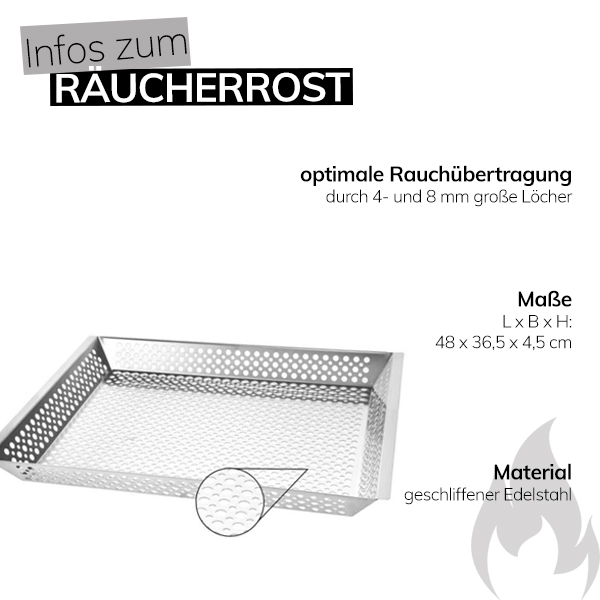 - Hochwertiger Edelstahl mit Perforation für schnelles und effizientes Räuchern