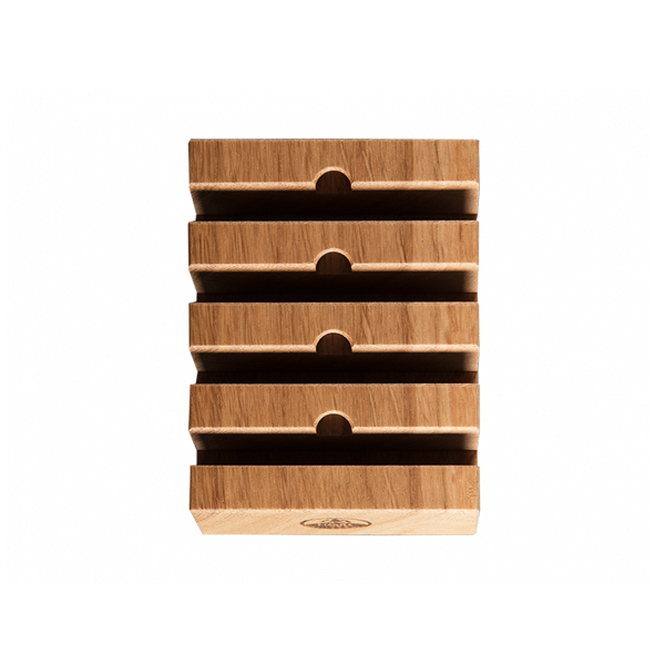 Die Schleifscheiben sollten in einem blockförmigen Aufbewahrungssystem aus dem Schwarzwald gelagert werden, das speziell dafür konzipiert ist, vier Schleifscheiben sicher und stilvoll zu verstauen. Diese Aufbewahrung schützt die Schleifscheiben und sorgt für Ordnung.