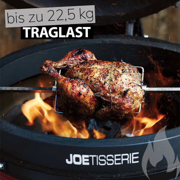 - Durch die Rotationsbewegung bleibt der Fleischsaft im Grillgut, was zu saftigem, zartem Fleisch und intensiven Aromen führt. Besonders für ganze Braten und Geflügel bietet die Joetisserie ein optimales Ergebnis.