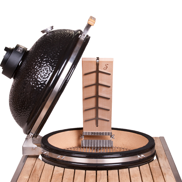 Das Flammlachsbrett eignet sich ausschließlich für den MONOLITH Classic und LeChef. Lieferumfang: Buchenholz Brett und eine Edelstahl Halterung.