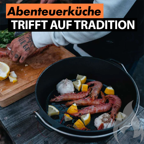 Ein robuster Edelstahlgriff macht den Transport einfach und sicher – sogar über dem Feuer an einem Dreibein. Damit bist du maximal flexibel, egal wo du kochst.