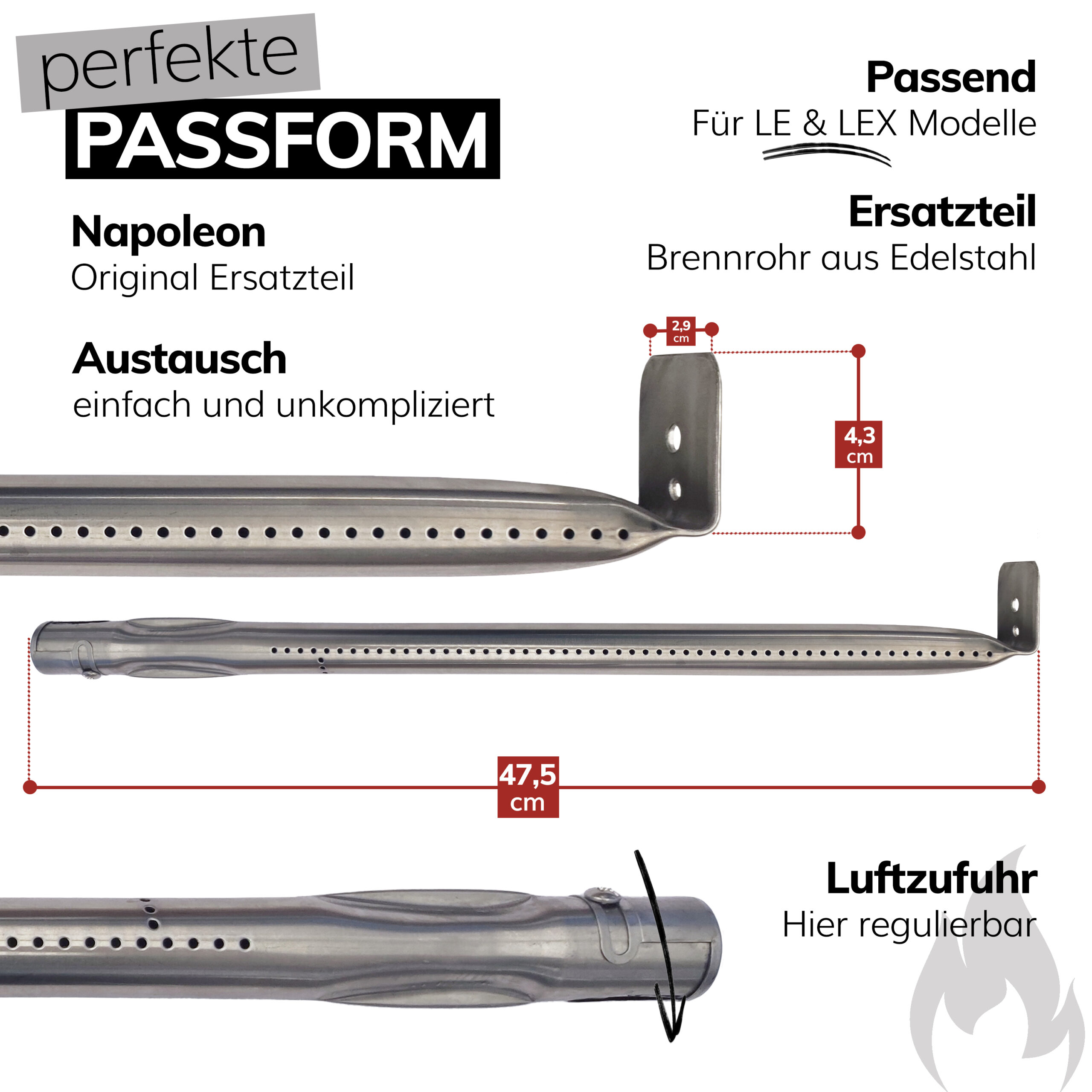 Napoleon Ersatzteil Brenner Edelstahlbrenner für LEX 485, 605, 730 und Legend LE1, LE2, LE3 aus Edelstahl Rohrbrenner für Gasgrill Art.Nr. N100-0073,GS014