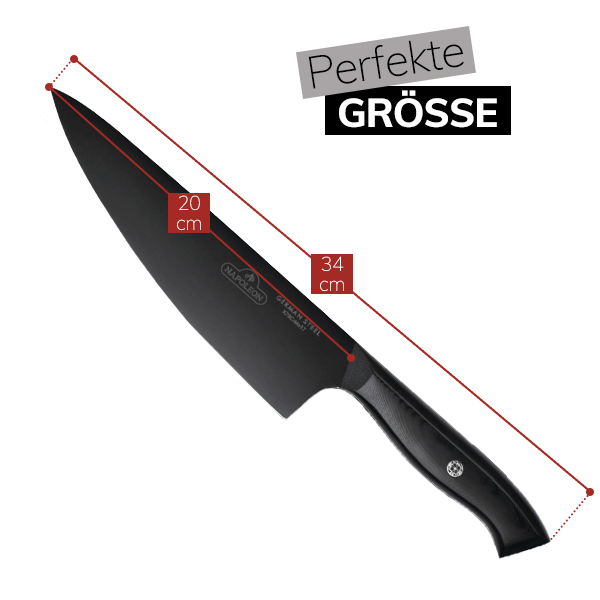 Sobald Sie das Phantom Profi-Küchenmesser verwendet haben, werden Sie Ihre Mahlzeiten nie wieder mit einem anderen Messer zubereiten wollen. Die mit Titan beschichtete Klinge ist rasiermesserscharf und gleitet problemlos durch alle Lebensmittel, die Sie zubereiten. Das ideale, universell verwendbare Profi-Küchenmesser mit einer Klingenlänge von 20 cm eignet sich für nahezu alle Zwecke. Der Stahl zieht sich über die gesamte Länge des Messers und sorgt dafür, dass es von der Spitze bis zum Griff perfekt ausbalanciert ist. Der doppelt genietete Griff liegt beim Schneiden, Hacken und Würfeln von Zutaten gut in der Hand. Egal, ob Sie ein Gourmet-Grillmeister oder ein Feinschmecker sind – mit dem Phantom Profi-Küchenmesser sind Sie für alle Vorbereitungsarbeiten bestens gerüstet. Clever, multifunktional und pflegeleicht – jede Küche profitiert von Napoleon Grillzubehör. Unser Zubehör bietet Ihnen das Wesentliche für die Zubereitung köstlicher Grillgerichte und darüber hinaus eine Vielzahl kreativer Ergänzungen, um Ihren kulinarischen Horizont zu erweitern.
