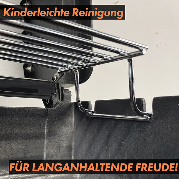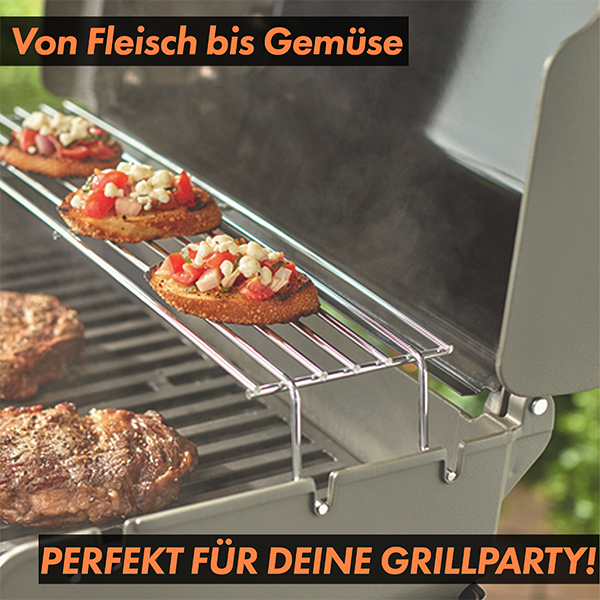 Das Warmhalterost bietet dir zusätzlichen Raum, um bereits fertige Speisen warmzuhalten, während du weitergrillst. So kannst du stressfrei für Familie und Freunde grillen, ohne dass etwas kalt wird. Ob saftige Steaks, zartes Gemüse oder knuspriges Brot – alles bleibt perfekt temperiert.