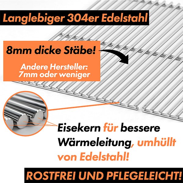 Edelstahl-Grillrost mit Eisenkern – Perfekte Hitzeverteilung