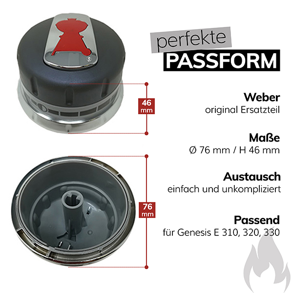 Weber Ersatzteil Drehknopf für Genesis E 310, 320 und E 330 Art. Nr. 89042