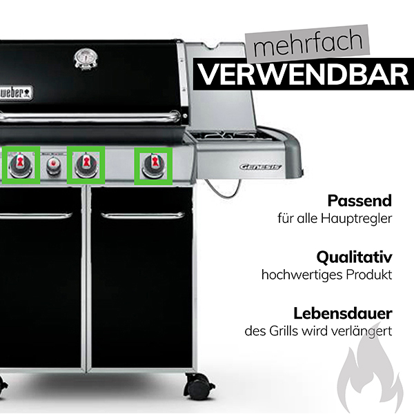 Mit diesem original Weber Ersatzteil Drehknopf bringst du deinen Weber Genesis E 310, 320 oder E 330 wieder auf Vordermann. Passend für Weber Genesis Gasgriller ab 2013.