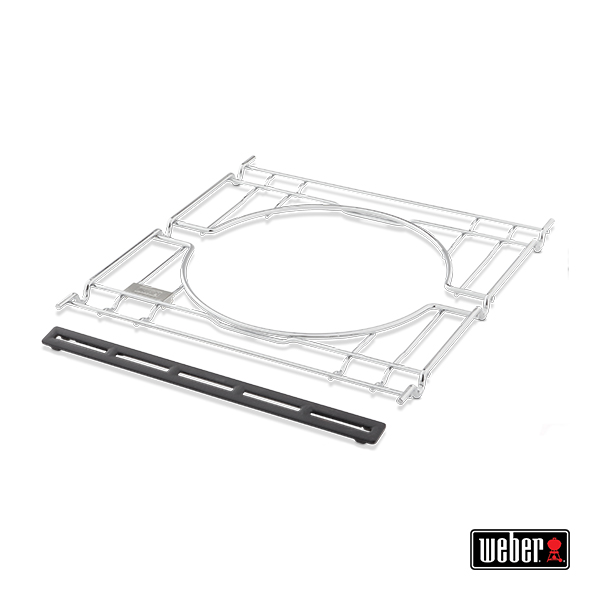 Um das WEBER CRAFTED Gourmet BBQ System zu installieren, entferne den rechten Grillrost deines Grills und setze den WEBER CRAFTED Basis-Rahmen ein. Dieser Rahmen ermöglicht die Verwendung von speziellen Grill-Einsätzen.