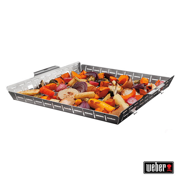 Der WEBER CRAFTED Grillkorb ermöglicht eine effiziente Hitzeverteilung, wodurch Gemüse und kleinere Fleischstücke perfekt gebraten werden können. Dies verhindert das Herunterfallen der Speisen durch den Rost und sorgt für eine gleichmässige Karamellisierung.