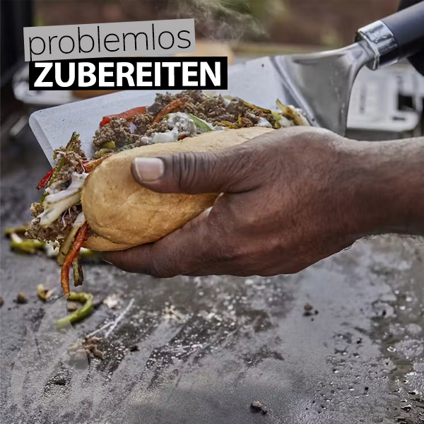 Vom rutschfesten, handlichen Griff bis zur abgeschrägten Kante, die aus jeder Richtung leicht unter das Essen gleitet, hilft dir der Grillplattenwender, dein Essen bequem und leicht zu manövrieren. Der Griff ist außerdem erhöht, sodass du dir keine Sorgen machen musst, dass er auf bekleckerten Seitenflächen aufliegt.