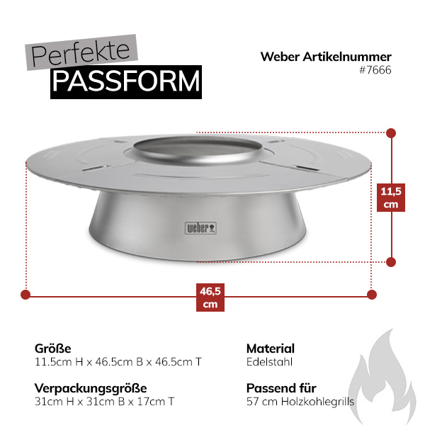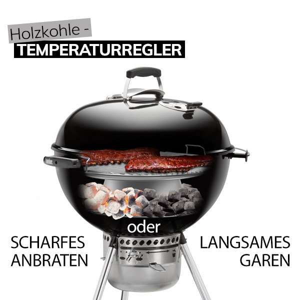 Mit dem Holzkohle-Temperaturregler von Weber für Holzkohle-Kugelgrills mit einem Durchmesser von 57 cm kannst du deinen Grill ganz einfach für scharfes Anbraten bei hoher Hitze oder langsames Garen bei niedriger Temperatur einstellen. Bestehend aus einem Kegel und einem Diffusorring, reduziert er den Aufwand für ungeübte Griller und bietet eine neue Ebene der Kompetenz für Grillprofis. Bei Verwendung von Holzkohlebriketts positioniert der Kegel die Holzkohle für bis zu 7 Stunden langsames Grillen, während der Diffusorring für gleichmäßige Hitze auf der gesamten Grillfläche sorgt, sodass du viel Platz für größere Speisen wie Rippchen, Schweineschultern und mehr hast. Der Kegel kann auch verwendet werden, um extrem hohe Hitze zum Anbraten sowie effiziente Konvektionswärme für perfekt knusprige Flügel, Fleisch und Gemüse zu erzeugen. Lecker. • Bis zu 7 Stunden langsames Garen bei niedriger Temperatur (110°C-135°C) vor erneutem Auffüllen • Der Diffusorring maximiert den gesamten 57-cm-Grillrost für indirektes langsames Garen bei niedriger Temperatur • Extrem starke direkte Hitze zum Anbraten, Konvektionswärme für knusprige Hähnchenflügel • Platz für Wasserschale, um Feuchtigkeit und Geschmack für langsames Garen bei niedriger Temperatur zu maximieren • Der Kegel kann für eine wiederholte, problemlose Verwendung im Grill bleiben • Der Diffusorring kann für eine kompakte, langfristige Lagerung auseinandergenommen werden