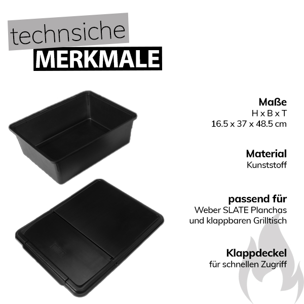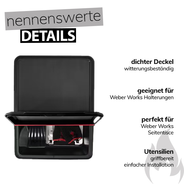 • Lässt sich in den Weber Works Seitentisch einsetzen, um die Grillutensilien griffbereit zu halten