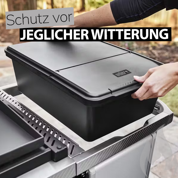 Bewahre dein Grillausrüstung ordentlich und gut geschützt gegen Witterungseinflüsse auf – mit der Weber Works Outdoor-Aufbewahrungsbox. Dank des dicht schließenden Deckels kannst du deine Grillutensilien im Freien aufbewahren. Außerdem sind die Grillwerkzeuge beim Grillen immer griffbereit.