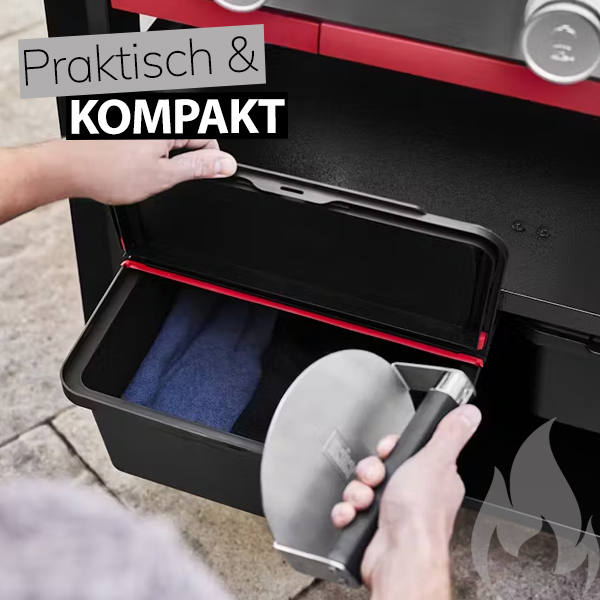 • Lässt sich bei offenem Unterschrank für eine einfache Aufbewahrung in die Weber Works Halterungen schieben